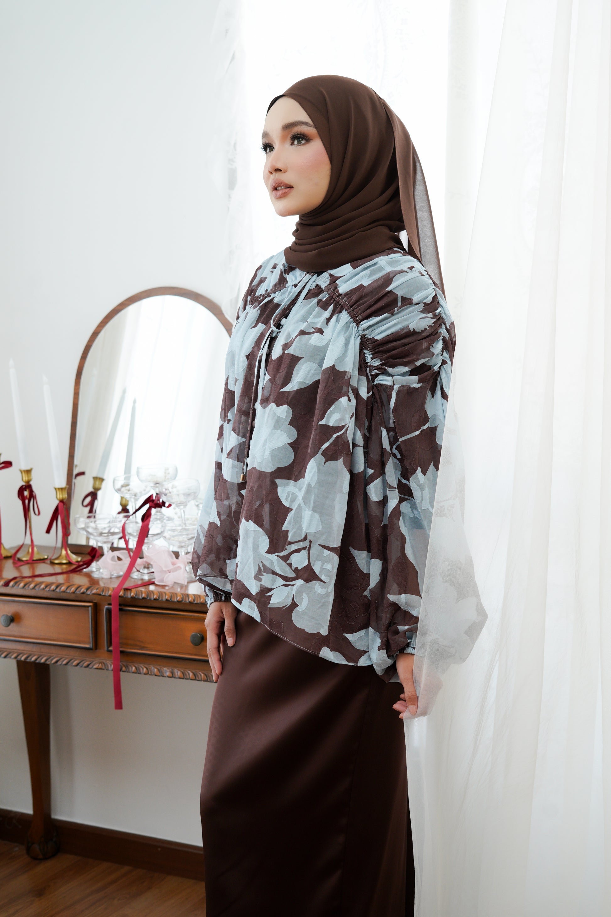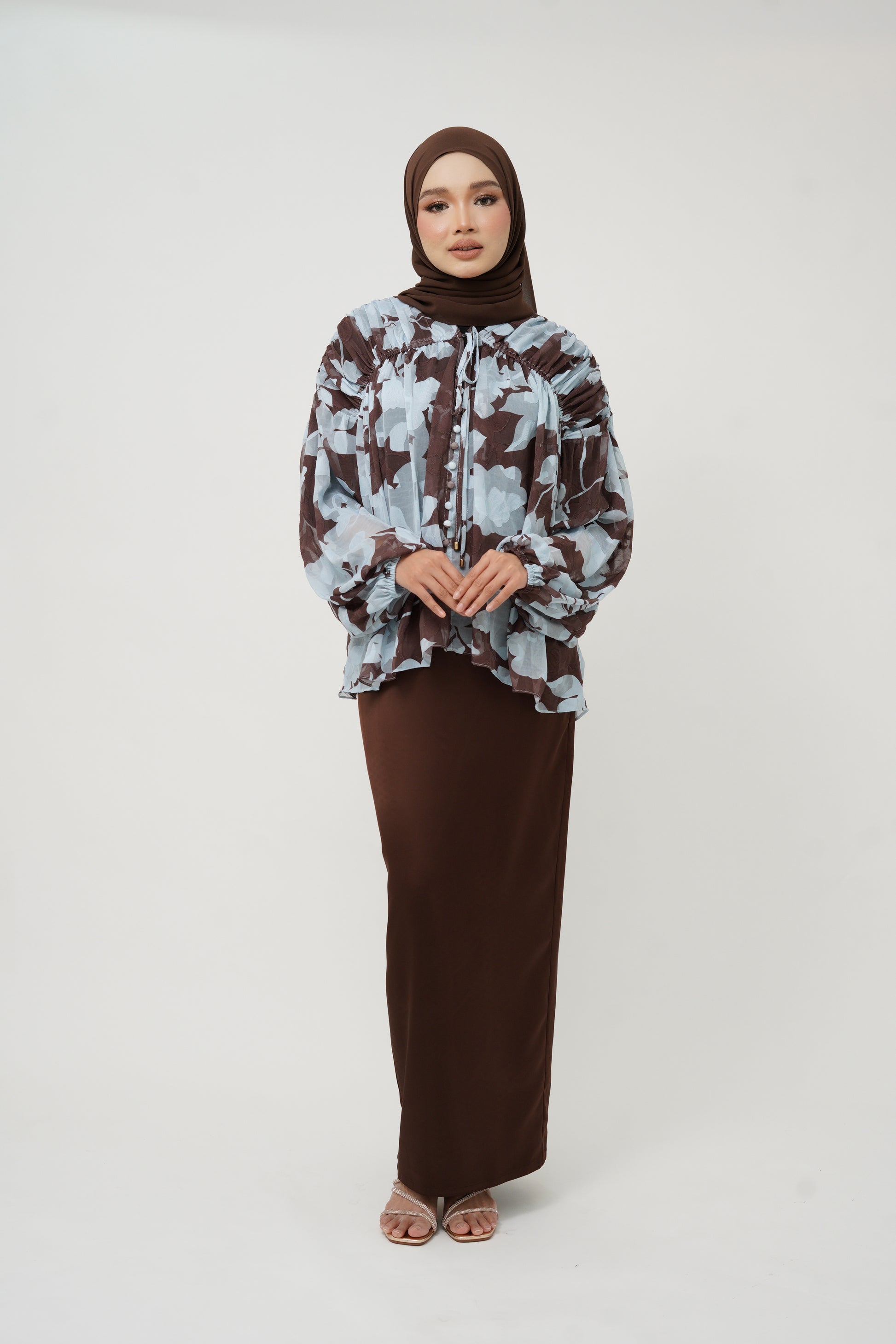 Hijab pairing suggestion: Soft Touch Chiffon in Cocoa / Powder
